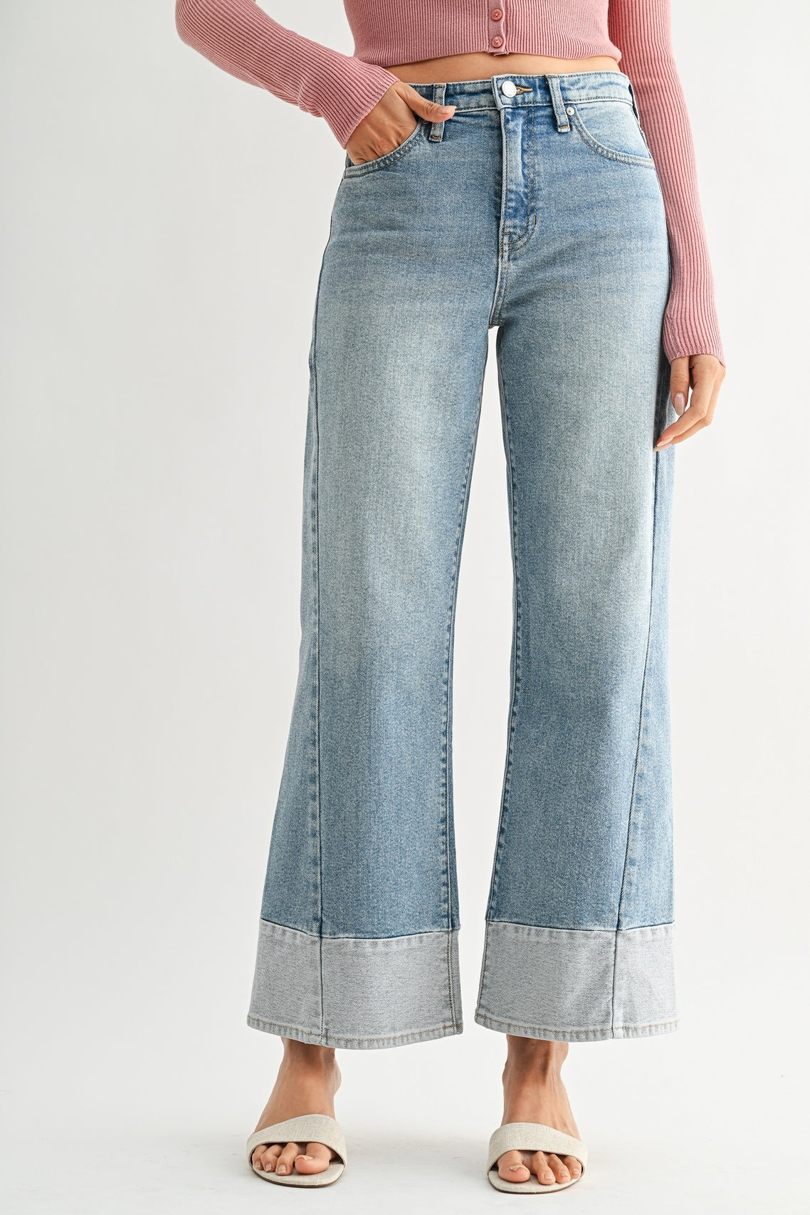 These aren't your average jeans—they're a vibe. The Jackie features a flattering slim-wide silhouette with signature hem seaming that adds just the right amount of edge. Crafted in crisp light denim, they're versatile enough for casual Fridays or dressed-up weekends. Comfortable, cool, and ready for whatever you throw at them.