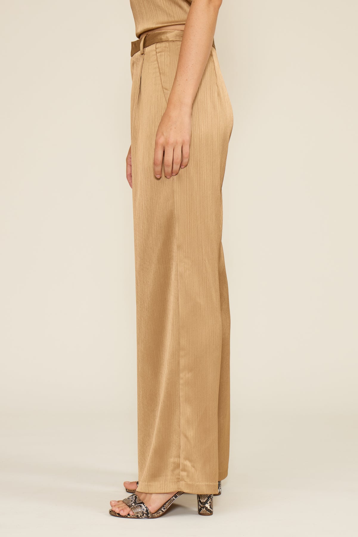 Introducing the Robbie Textured Pant—your new go-to for effortless style that actually feels as good as it looks. Crafted in luxe taupe satin with subtle texture details, these pants strike the perfect balance between polished and comfy. Whether you're dressing up for a night out or keeping it casual, the Robbie adapts to your vibe. The rich, neutral tone pairs with practically everything in your closet, making it ridiculously easy to create endless outfit combinations. Slip them on and feel the difference quality makes.