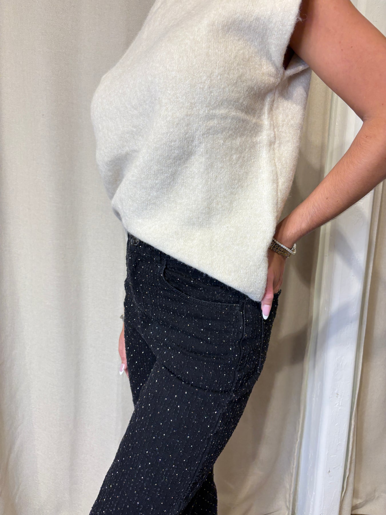 Layer up with the Victoria Turtle Neck Sleeveless Sweater, your new go-to for effortless style. This cream-colored knit features a classic turtleneck and sleeveless silhouette, making it perfect for pairing over long-sleeve tees or wearing solo during milder weather. The cozy texture and timeless design bring a touch of sophistication to any outfit, whether you're dressing it up or keeping it casual. Versatile, chic, and ready for anything.