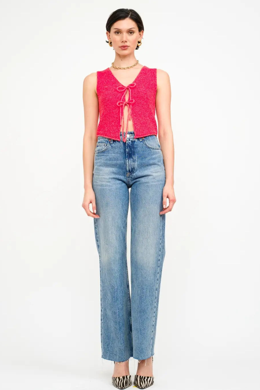 The Kendall Knit Tie Top is your new go-to for effortless cool. This cropped knit vest features charming front ties that let you customize the fit and vibe—cinch it tight for a polished look or keep it loose and breezy. Perfect for layering over your favorite tees or styling solo, it's the kind of piece that works as hard as you do. Cozy, versatile, and undeniably chic.